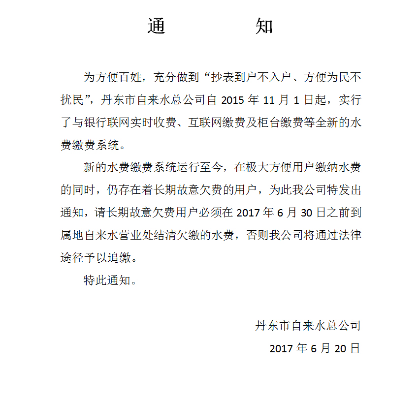 • 丹東市物價局關于調整城市居民生活用水價格并實行階梯水價制度的通知2017-06-15